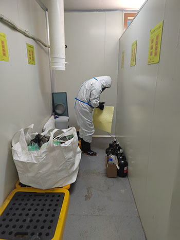 2、要时刻注意观察现场情况。是否有实验废液流至雨污水管网,如有应将受污染的实验废液抽至桶内,做危废处理。