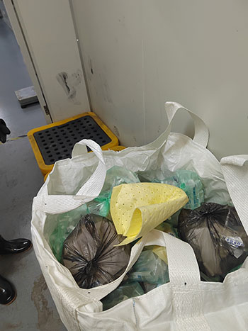 1、2026年1月22日,安全管理员巡查发现危废仓库有实验废液桶破裂,少量实验废液泄漏。